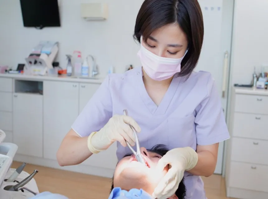 抜歯後は止血し、傷口の状態を確認します。必要に応じて鎮痛剤や抗生物質を処方し、術後の腫れや痛みを抑えます。また、術後の注意点についても丁寧に説明します。